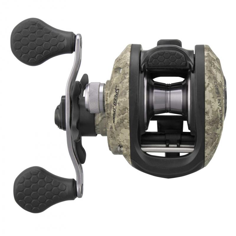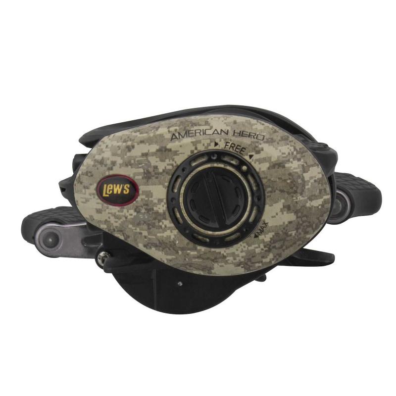 Lews American Hero Camo low profile baitcasting fishing reel series.